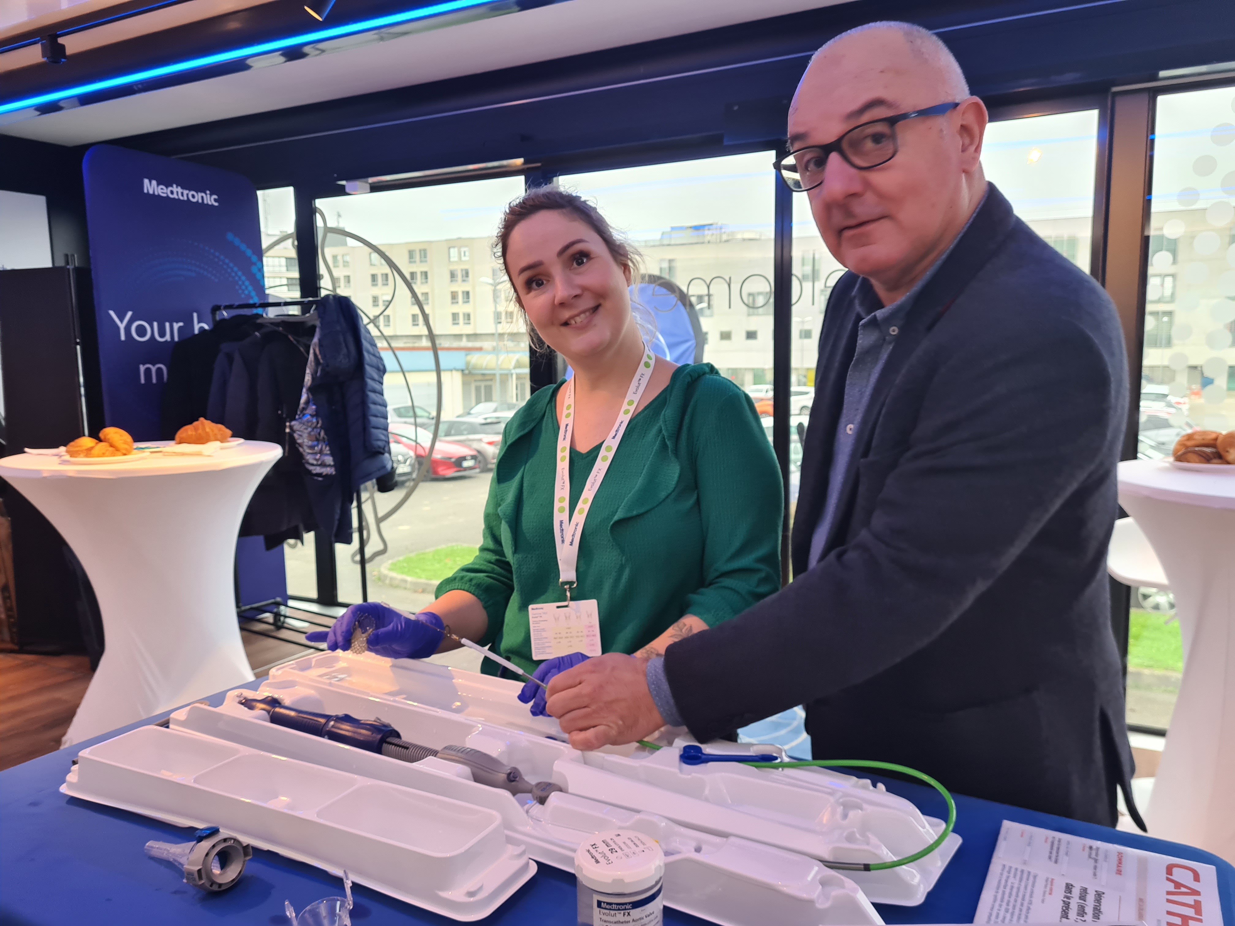 Dr Radwane Hakim : Le bus de simulation TAVI était ouvert à tous les cardiologues, les internes, et les paramédicaux (IDE et MER) de la salle de cathétérisme. Une trentaine de professionnels s’est ainsi succédée tout au long de la journée pour pouvoir manipuler et implanter des prothèses valvulaires aortiques sur un simulateur !